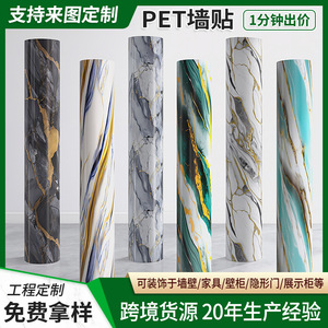 自粘仿大理石墙贴商场改色翻新石纹贴整卷背景墙壁纸加厚pet墙贴