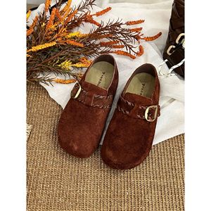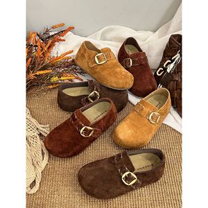 壹米恩2025秋季新款韩版真皮磨砂百搭搭扣厚底内增高休闲勃肯鞋女