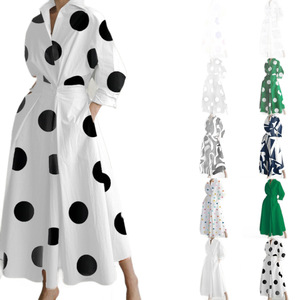 跨境欧美新款长袖时尚休闲大码V领纯色长裙气质通勤连衣裙女
