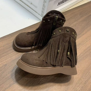 2025秋冬季新款儿童加绒中筒靴女童公主流苏靴小女孩时装加绒短靴