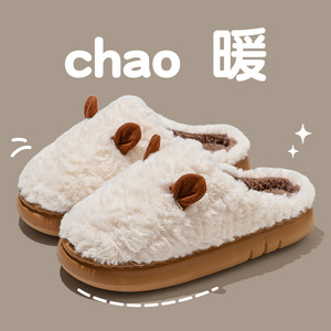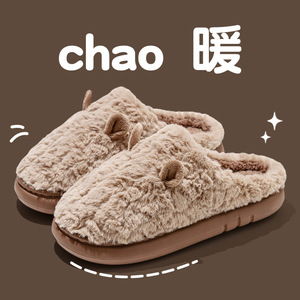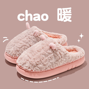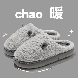 踩屎感棉拖鞋男士5新冬季室内家居厚底防滑保暖毛绒拖鞋女