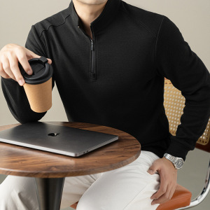 含山羊绒桑蚕丝卫衣男2025秋冬新款立领拉链纯色保暖打底男士上衣