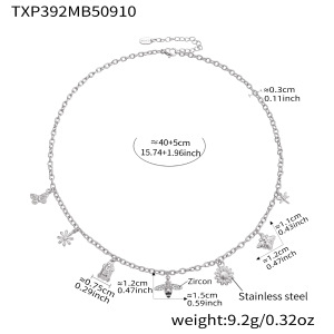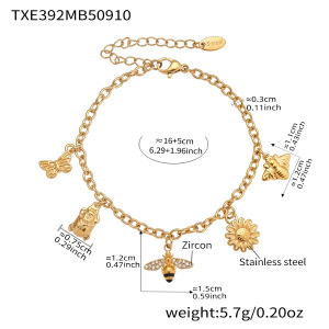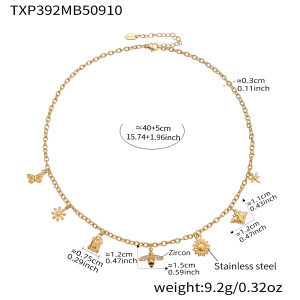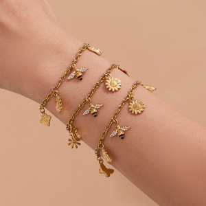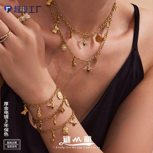 谜丽跨境新款不锈钢昆虫向日葵多吊坠项链脚链手链慵懒假日风饰品