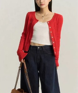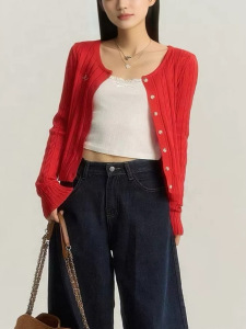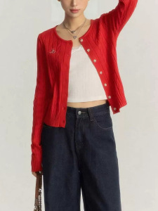 秋季枣红色毛衣穿搭麻花针织开衫女韩系复古短款上衣外套