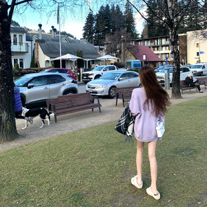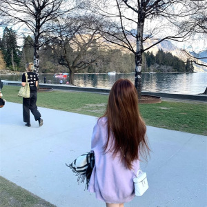 巴黎初雪 温柔定染薰衣草紫针织套装开衫吊带半裙