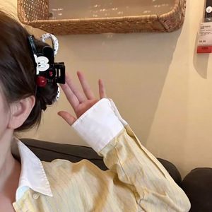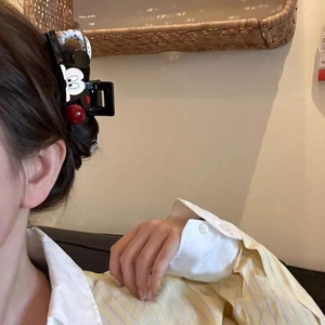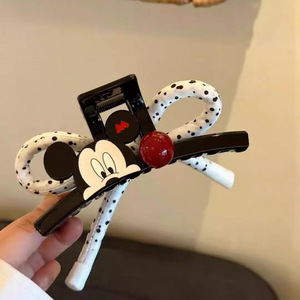 新款卡通米奇波点蝴蝶结抓夹高级感AB面后脑勺大号盘发鲨鱼夹批发