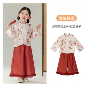 汉服女童新中式秋季2025新款儿童中国风小女孩古风中秋节春秋套装