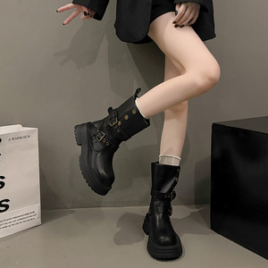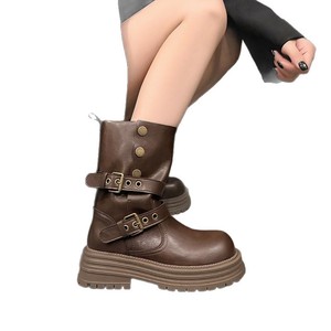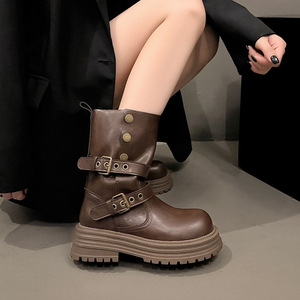 美拉德棕色靴子厚底黑色短靴女款2025新款秋复古女鞋英伦风马丁靴