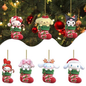 跨境新款圣诞节装饰亚克力平面圣诞可爱卡通装饰挂件钥匙扣挂件