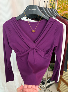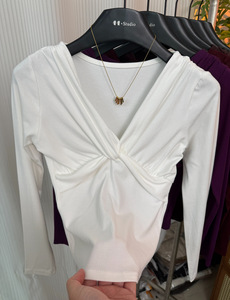 高级感chic别致扭结交叉领上衣女2025早秋新款洋气减龄显瘦打底衫