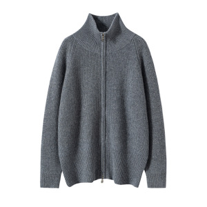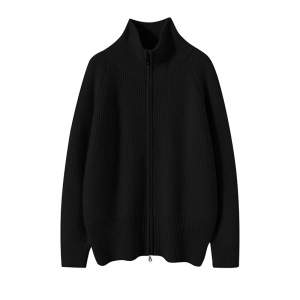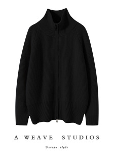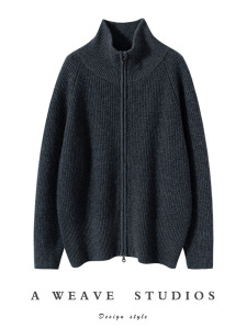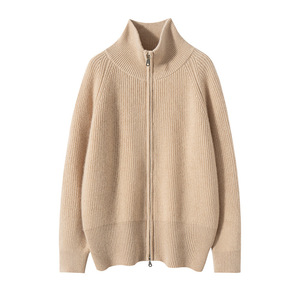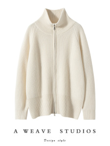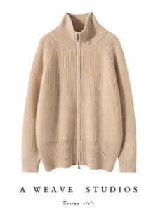 双股加厚!BABY小山羊绒针织开衫女秋冬新款高领加厚宽松针织外套