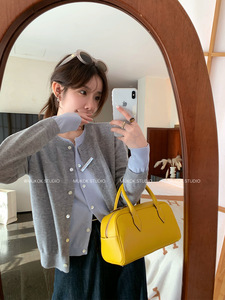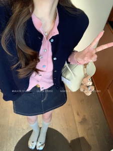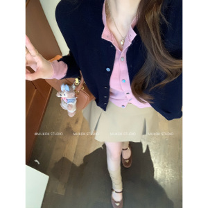 MUKOK miu系~羊毛灰色假两件针织开衫女上衣毛衣2025春季新款
