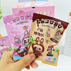 跨境爆款拉布布盲袋橡皮擦卡通幸运抽抽乐盲盒可拆卸立体造型橡皮