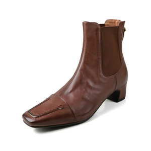裂墙推!欧货轻奢2025秋粗跟方头真皮通勤短靴女百搭松紧切尔西靴