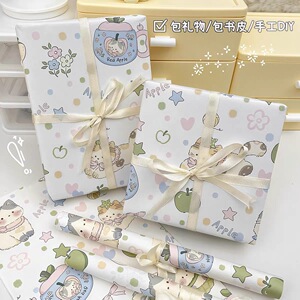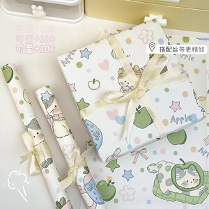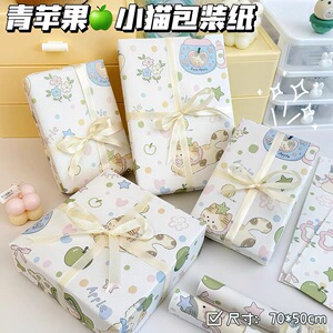 小红书同款青苹果小猫礼物包装纸高颜值大尺寸礼品纸礼物纸书皮纸