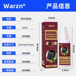 warzn亚马逊跨境草本乌发液毛躁干枯柔顺液滋养发根黑发液tiktok