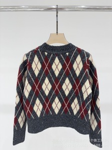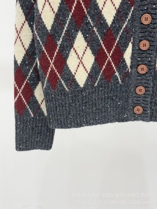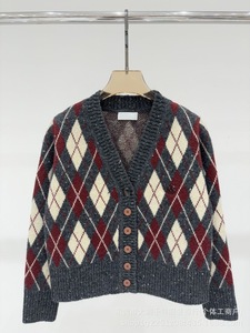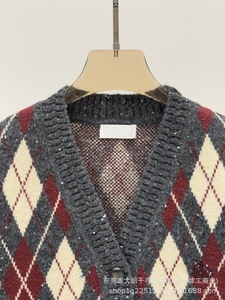 25早秋新款南油高定VI+经典复古菱格土星刺绣V领单排扣针织开衫女