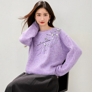 重工亮片长袖针织衫毛衣女春秋2025大码胖mm显瘦今年流行漂亮上衣