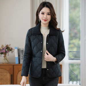 纯色翻领中年棉衣羽绒棉服外套女秋冬新款妈妈女士轻薄小棉袄短款