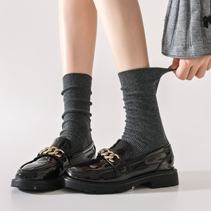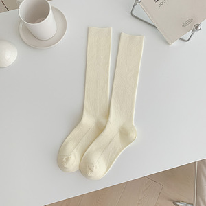 双针纯棉中筒袜子女士四季款JK长袜显瘦及膝小腿袜黑白灰色堆堆袜