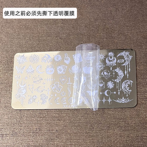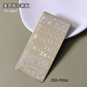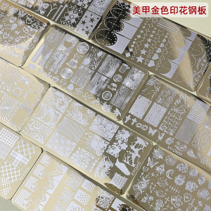跨境美甲印花钢板法式线条蝴蝶花朵金色长方形印花板指甲转印工具
