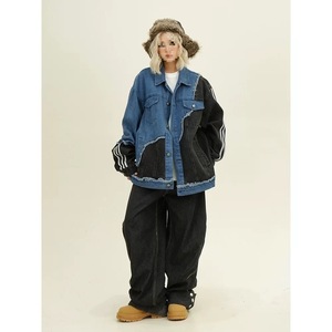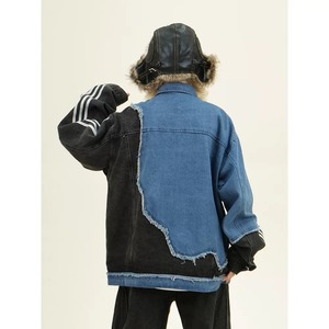 美式复古潮牌设计感不规则拼接牛仔夹克外套街头休闲男款