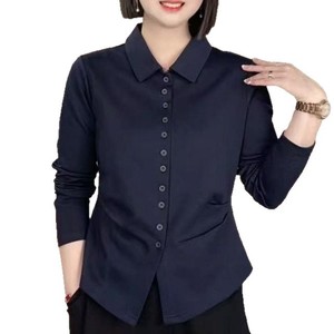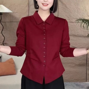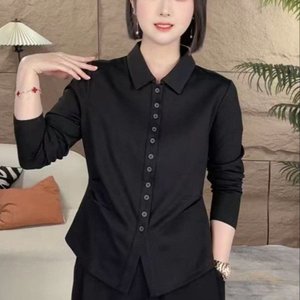 一件代发直播爆款翻领长袖衬衫女2025春秋季新款纯色百搭上衣开衫