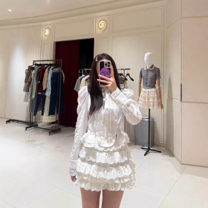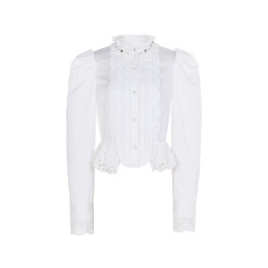 拉家同款2025秋季新款重工镂空刺绣立体木耳边钉珠宫廷款收腰衬衣