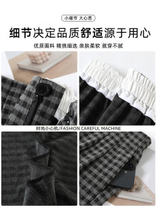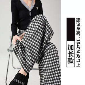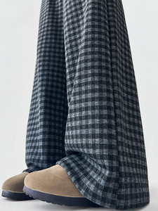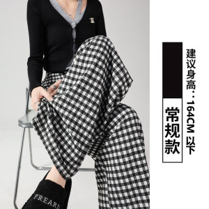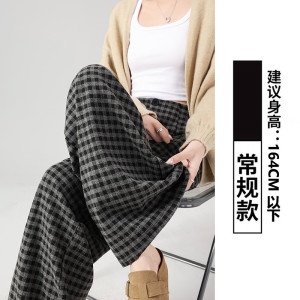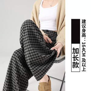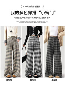 复古格子阔腿裤裤女2025秋季新款高腰休闲宽松拖地慵懒风直筒裤子