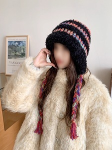 显脸针织围保暖毛绒百搭帽子小大头帽女护耳雷锋帽秋冬季防寒可爱