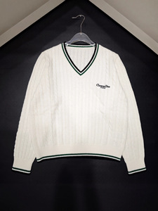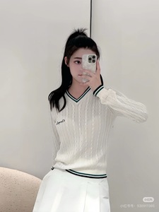 早秋新款字母刺绣学院风撞色拼接V领针织长袖上衣女
