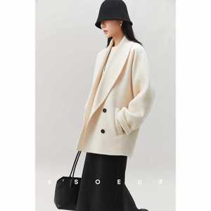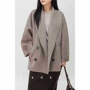 2025冬季新款中长款气质青果领 一手长宽松廓形气质双面呢大衣女
