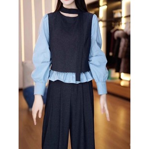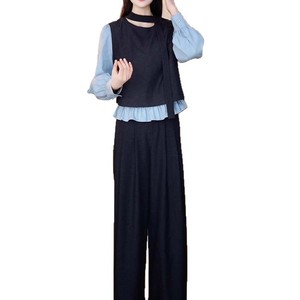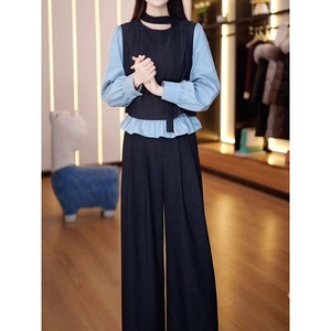 假两件上衣配阔腿裤套装女2025春秋新款气质女神范收腰显瘦两件套