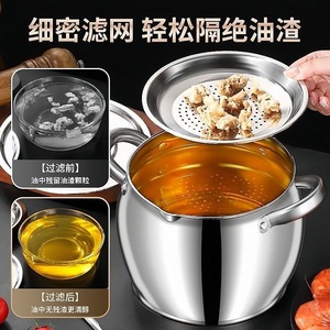 双耳猪油桶不锈钢滤网猪油锅带盖家用耐高温防烫猪油罐过滤油渣壶
