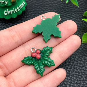 24247-1个22x25-1.3g绿色树脂圣诞节冬青叶树叶果实