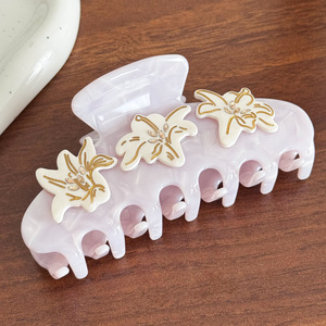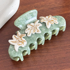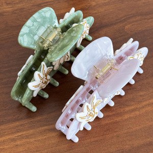 高级感百搭醋酸大号抓夹珍珠水晶发夹立体花朵夹子盘发鲨鱼夹发饰