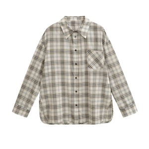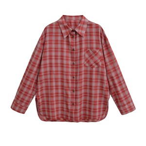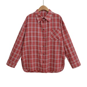 早秋韩系复古撞色格子衬衫女松弛感宽松大版薄款防晒开衫慵懒衬衣
