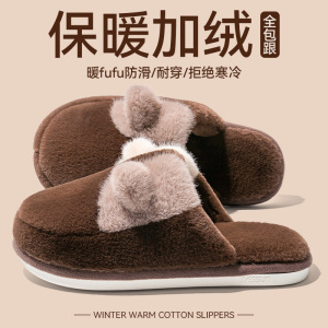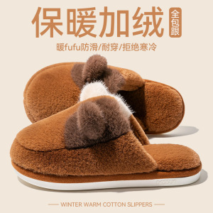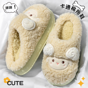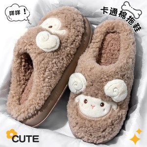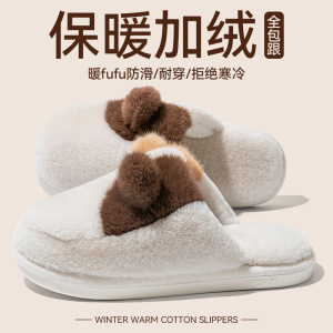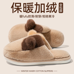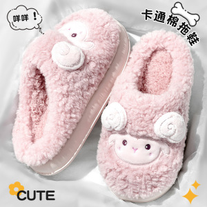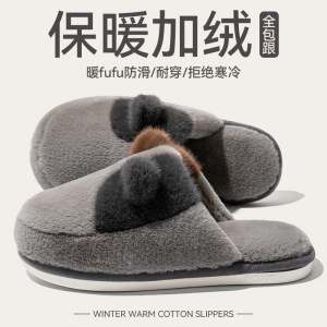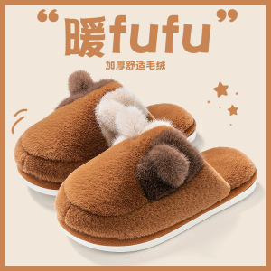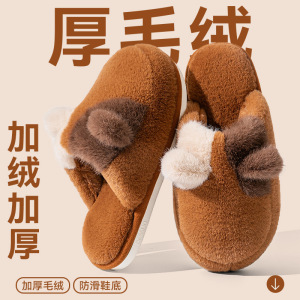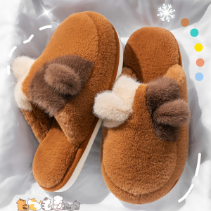 女士双色猫耳棉拖鞋2025新款ins风居家室内保暖毛绒绒可爱棉鞋女