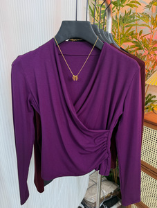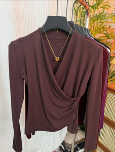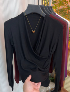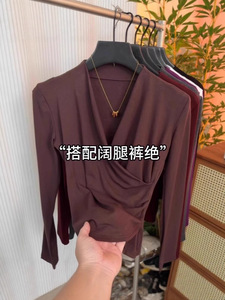 超好看独特漂亮V领上衣女2025早秋穿搭设计感小众洋气内搭打底衫