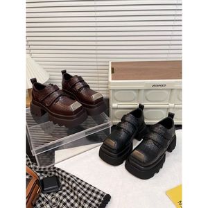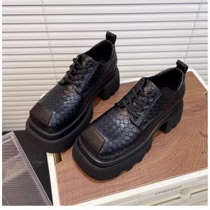 欧洲站2025春夏季新款方头小皮鞋编织厚底百搭乐福鞋系带增高女鞋
