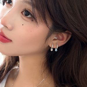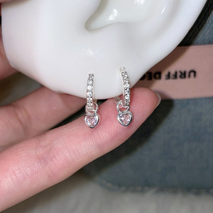 日韩甜美粉色锆石爱心耳环女轻奢高级感ins百搭耳圈精致小众耳饰