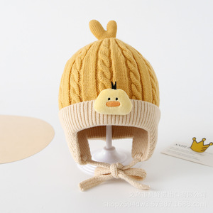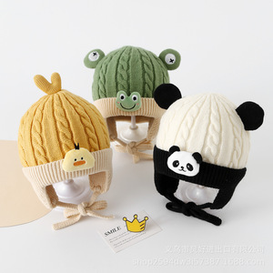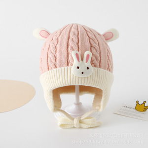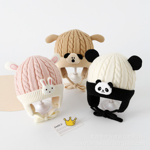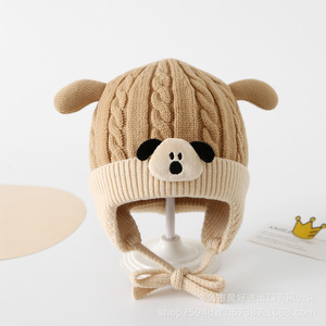 宝宝毛线帽秋冬季婴儿针织套头帽男女可爱卡通婴幼儿保暖护耳帽子
