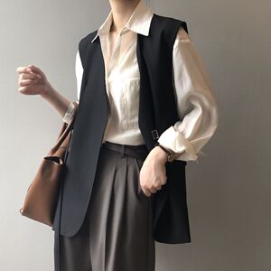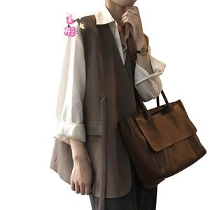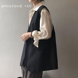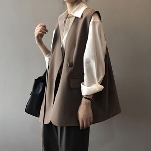 无领西装马甲女咖色V领外搭春秋时尚法式ins西服背心系带马夹外套