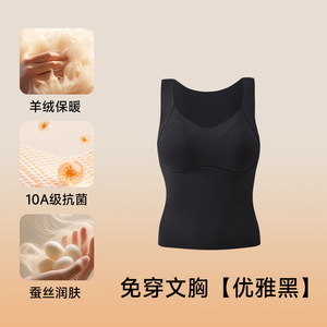 88688秋冬保暖背心带胸垫一体吊带加绒加厚无痕内搭打底衫内衣女