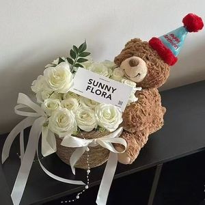 11朵 可爱多色+(生日小熊抱抱桶+礼袋)