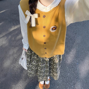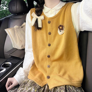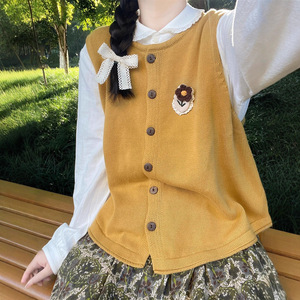 日系复古黄色针织马甲女秋冬装叠穿无袖马夹外搭开衫百搭毛衣背心