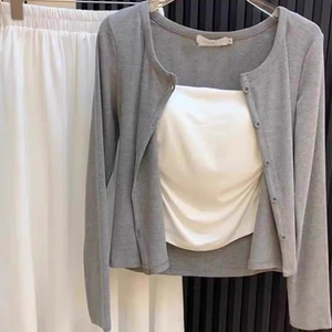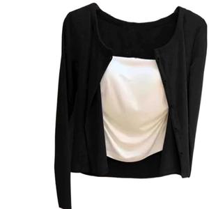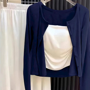 藏青色针织防晒开衫女薄款百搭秋季配吊带裙短款罩衫休闲外穿上衣
