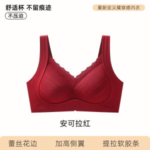 粉底肤内衣女薄款无痕隐形小胸聚拢防下垂收副乳调整型红色文胸罩