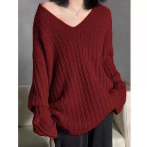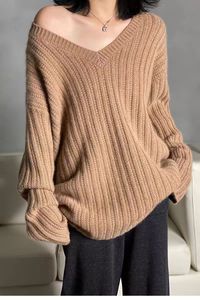 2025秋冬100%羊毛慵懒风V领玉米粒宽松套头毛衣女显瘦外穿长袖针