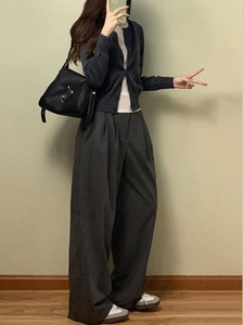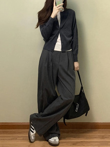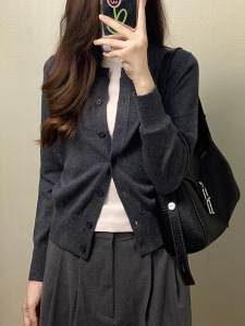 灰色系扣针织开衫女25年秋韩系复古小个子设计感气质减龄毛衣外套